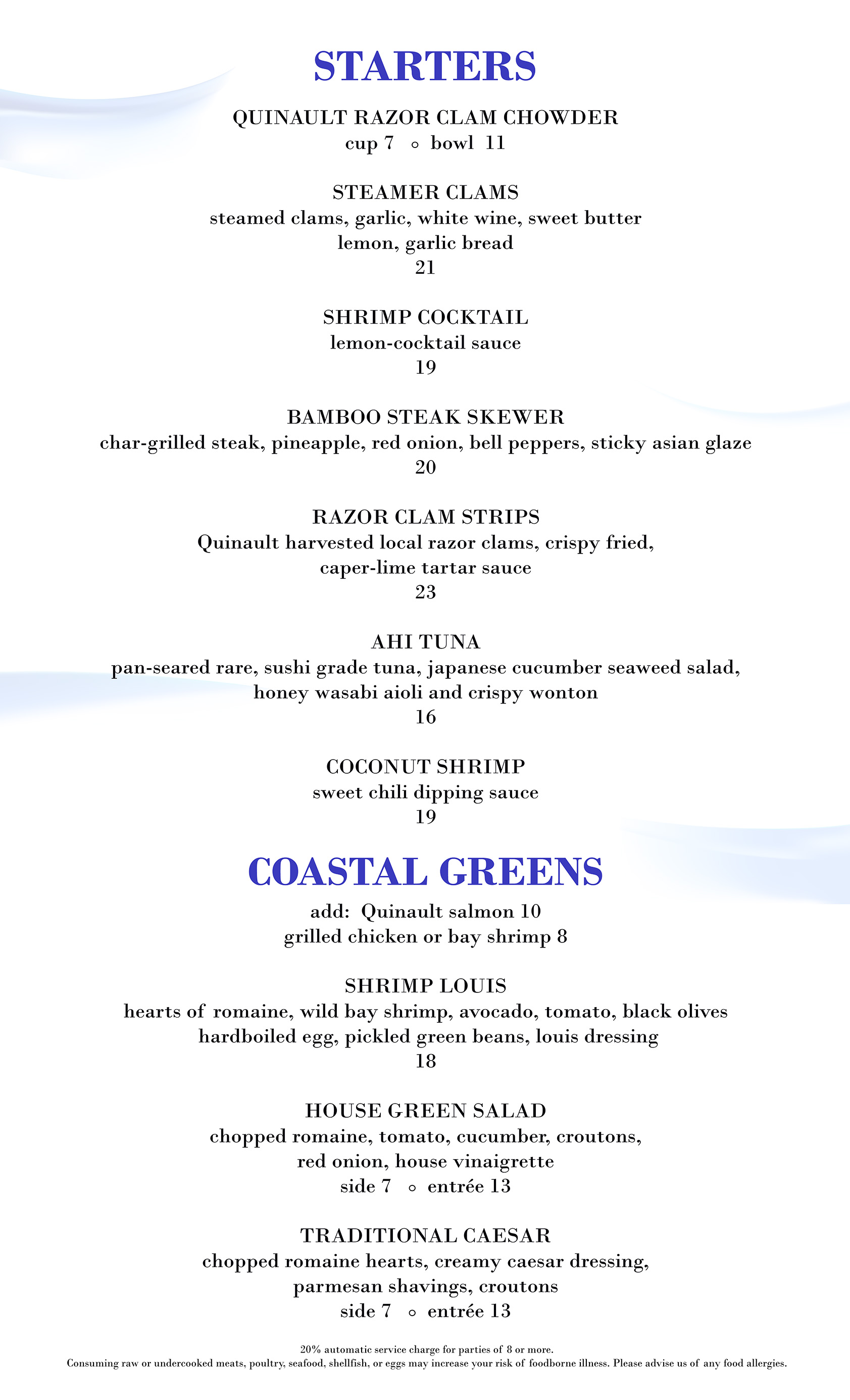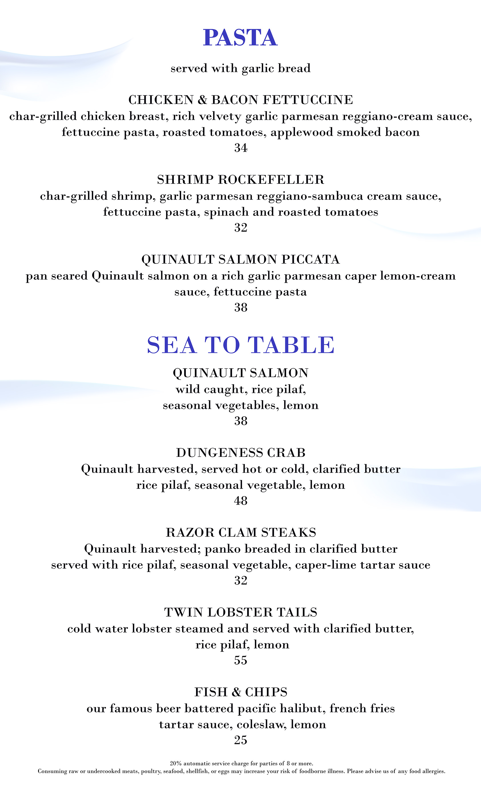 Emily's features fresh Quinault Pride Seafood.