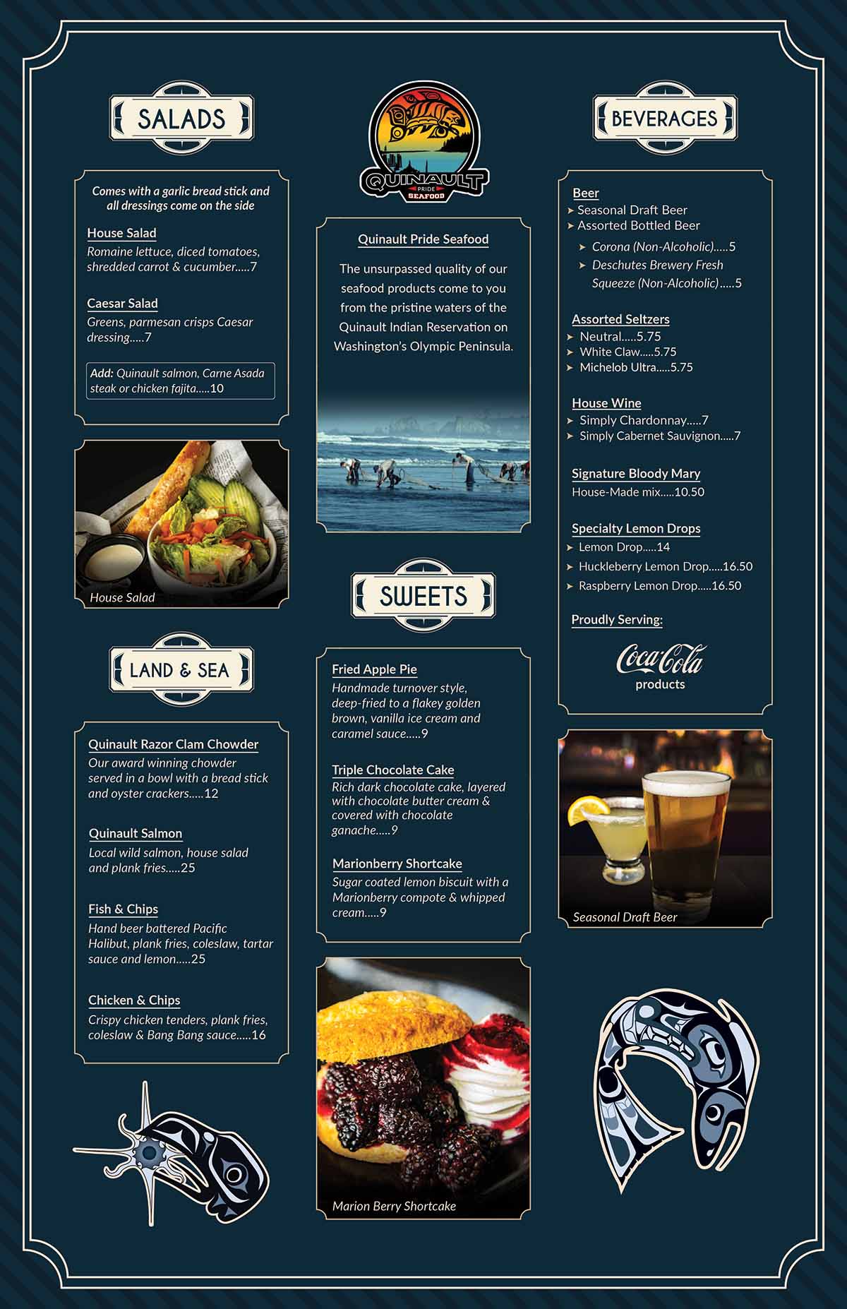 Come enjoy a relaxed atmosphere in the Ocean Lounge with a number of TV screens playing all of your favorite sports games. In addition to the micro-brews, hand-crafted cocktails, wide beer selection & Wines, the Ocean Lounge offers a lively respite for those in search of cool drinks and tasty appetizers in Ocean Shores.